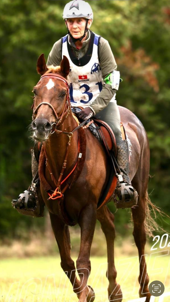 Bango und ich waren dabei! Und nicht nur das: wir beendeten das unglaublich schwierige Rennen über 160 Kilometer "Sumpf-Pisten" als bestes CH-Paar auf Rang 29 (von 147 selektionierten Paaren aus 39 Ländern). Nur 45 Reiterpaare konnten das Rennen beenden, darunter gleich hinter mir auch die beiden Schweizerinnen Barbara Lissarague und Audrey Acquistapace. Christine Günthart und Florence Bertrand mussten eliminiert werde, da sich ihre Pferde unterwegs verletzten. Zusammen erreichtern wir in der Nationen-Wertung den sehr guten 5. Rang (hinter Malaysia, China und Frankreich, das souverän Team-Gold erreichte). Ebenfalls souverän verteidigte HH Sheik Nasser seinen Weltmeistertitel. Wir starteten um 05:30 Uhr in der Dunkelheit bei strömendem Regen und heftigem Gewitter. 2 Stunden lang waren wir so mit Stirnlampen mehr oder weniger in Einerkolonne unterwegs, bis es langsam Tag wurde und wir für die erste Pause (nach 38 Kilometern) wieder auf der Rennbahn Marsales in Monpazier eintrafen. Bei der ersten Tierarztkontrolle kam für mehrere Reiterpaare schon das AUS, doch Bango passierte alle Kontrollen mit einer 1A-Checkkarte und beeindruckte die Tierärzte auch in der Schlusskontrolle, wie mir unsere Equipen-Chefin später erzählte. Bango wurde in den Pausen und auf der Strecke bestens betreut durch Kaspar, Luzia Zuidema und das Züchter-Ehepaar Nicolas und Sandrine Blot von Coutillas-Endurance.com. Alle leisteten einen super Job, und unterstützten mich, dieses Rennen mit meinem unglaublichen Power-Rössli durchzustehen. Ich hätte im Ziel, abends um 20:12 Uhr, keine 1A-Checkkarte mehr bekommen... Danke euch allen! Es war das Rennen meines Lebens.