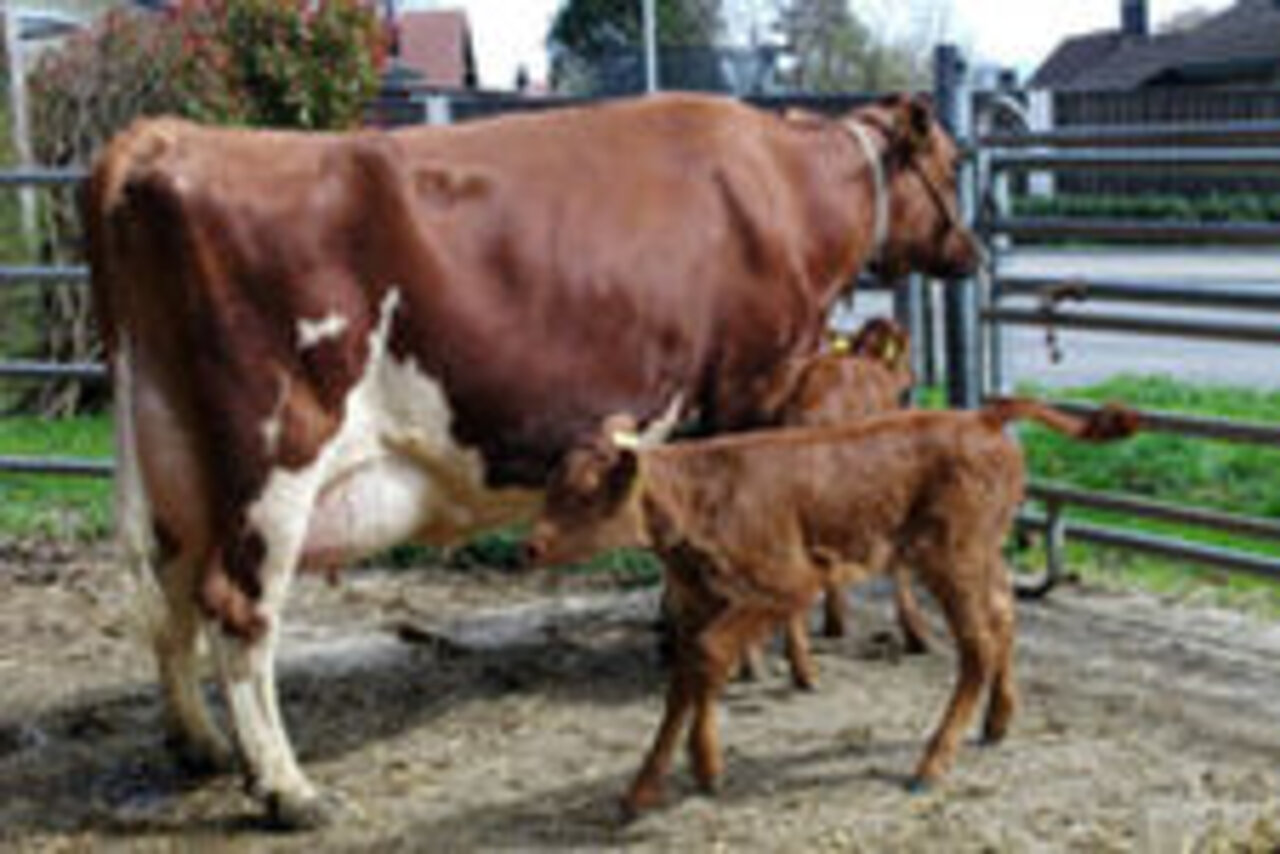 Eli hat am 22. März im Stall von Hans Egli zum dritten Mal gekalbt und hat ganz alleine Zwillinge geboren! „Esther“ und „Erika“ sind zwei muntere Kälbchen von einem Limousin-Stier. Eli selber ist mit 14 Kilo Körpergewicht im August 2012 in’s Leben gestartet und hat nun bei ihrer dritten Geburt zwei gut 40 Kilogramm schwere Kälber geboren. Zudem hat sie in der vergangenen Laktation in 360 Tagen 10‘117 Liter Milch gegeben.