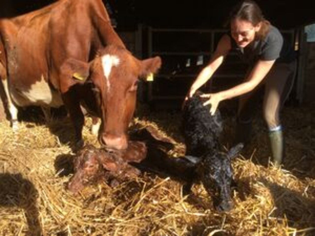 Nach den Zwillingen im März 2018 hat unsere Eli am 2. November 2019 Drillinge geboren! Das erste kam leider tot zur Welt, doch die anderen beiden haben überlebt. Nach dieser absolut aussergewöhnlichen Leistung hat Eli eine Labmagenverlagerung erlitten und musste im Tierspital operiert werden, wo sie sich gut erholte und zur VIP-Kuh avancierte :-)